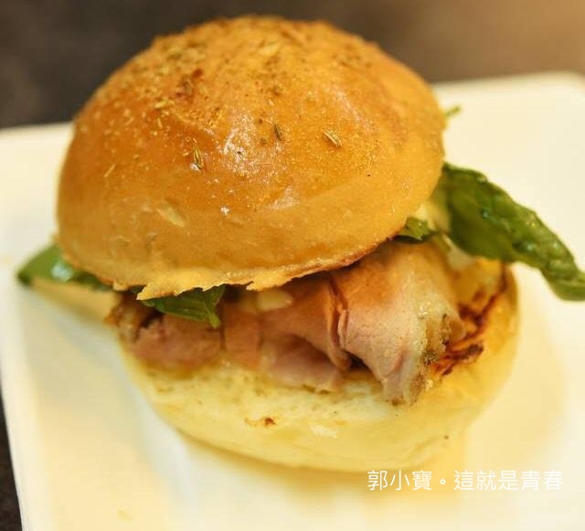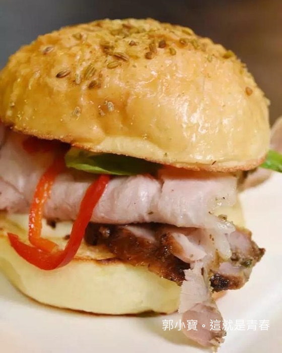 - 烤猪肩肉、腌辣椒、波萝伏洛干酪、茴香奶油面包