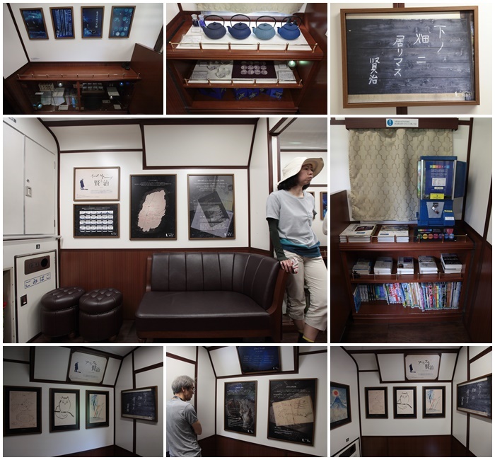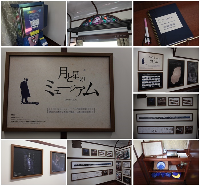 | 車上放了很多宮澤賢治的介紹跟作品,如果想更了解宮澤賢治的話,仔細看看這一台火車的每個角落就能更了解它了,我覺得這一台火車載滿了宮澤賢治的夢想,其中有很多角落的座椅是沒有買到座位票的旅客可以乘坐的,坐在這邊是不是很像在某個博物館的角落呢? |