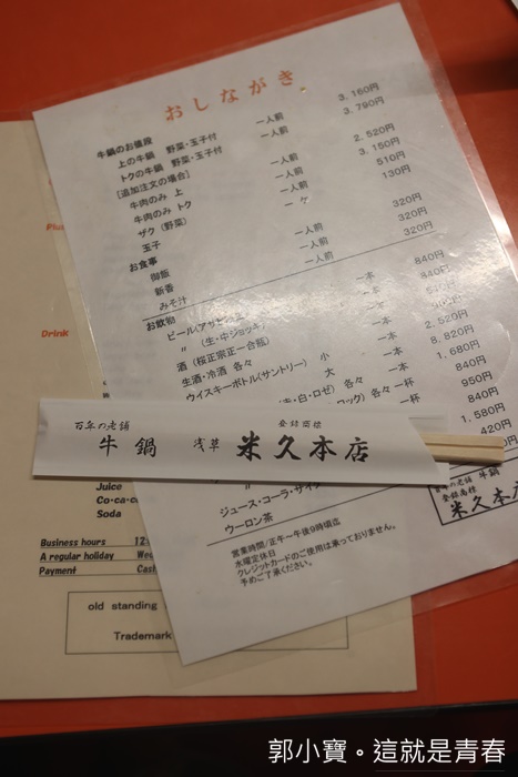 米久的菜單看起來就是平價到一個流眼淚,跟淺草今半比起來簡直太親民了,難怪這邊是日本人的隱藏版老店,日本友人推薦給我的時候還一直跟我說別宣傳,因為這邊沒有甚麼觀光客,但是我還是要努力分享給大家知道XD