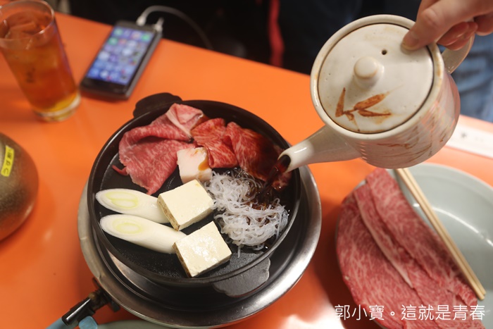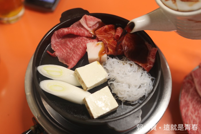 | 倒上醬油後服務人員就會先離開了,可能看我們是外國人,所以還特地教我們壽喜燒的吃法,店家都還滿親切的,不會因為我們是外國人而有所差別。 |