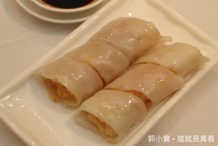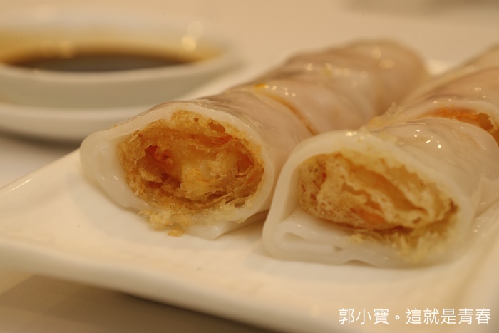 | 六棉的招牌腸粉,少數可以吃到的油條腸粉裡面還包裹著蝦肉,一口咬下滑嫩脆三種口感讓人驚喜,每一口都相當的滿足。 |
