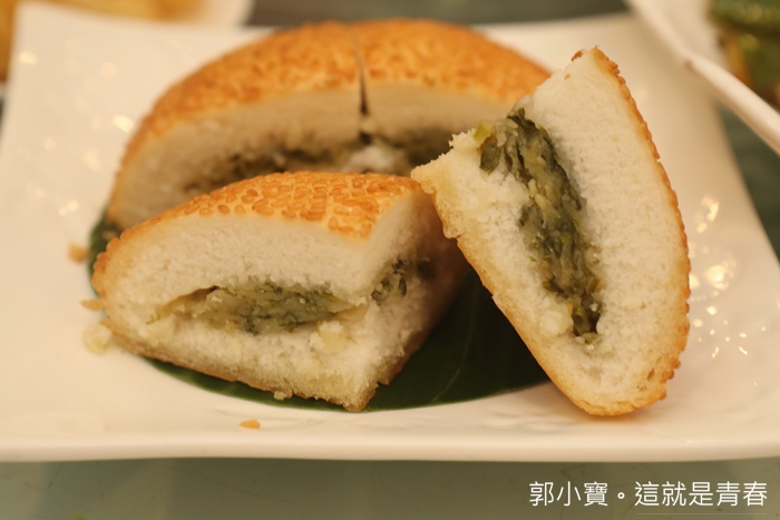 上桌的時候看起來就像一個大餅,切開後就可以看到裡面還包裹著蔥花,一口咬下的軟綿感加上油蔥超對味,有點像是蔥花銀絲卷的感覺,但是口感上我更喜歡六棉酒家的蔥油餅XD