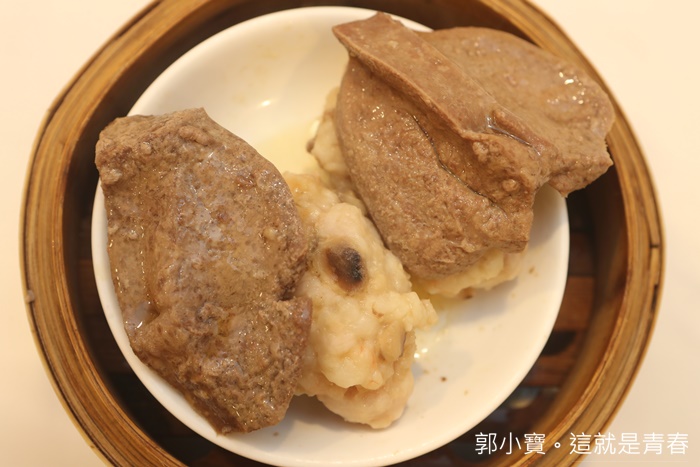 據說也是招牌中的招牌,不管是香港還是澳門對於豬肝都有獨門的料理手法,不管是煲湯還是粥品都可以很常看到豬潤這一個選項,豬潤燒賣可以看到超大一片豬肝對切,蒸的熟透後一起跟燒賣入口,豬肝口感不會沙沙,口感彈牙相當好吃呢!