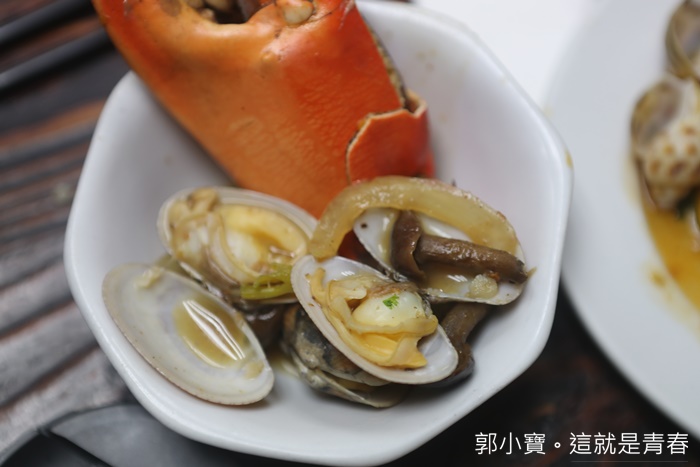 | 就是貝殼類的海鮮,澳門俗稱花甲,但是我不知道他正確的學名是甚麼,一沸騰就建議趕緊撈起來,因為花甲久煮口感會變老,花甲給的份量超多,我們每個人都撈了一堆還撈不完,花甲一熟就撈起來往嘴裡送,吃得相當過癮! |
