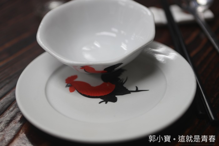 | 水佬榮使用的餐具頗有趣味,是現在大家去泰國都會搬回來的公雞瓷盤組XD
