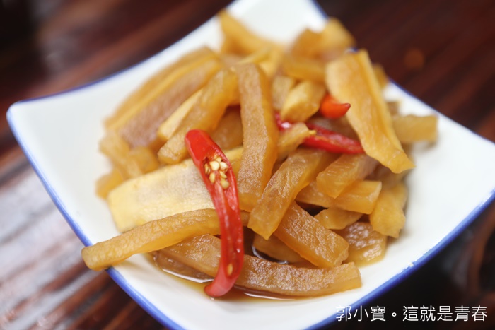 | 餐前招待的小菜醃蘿蔔,有點辣度吃起來非常ㄕㄨㄚˋ嘴,很好吃! |