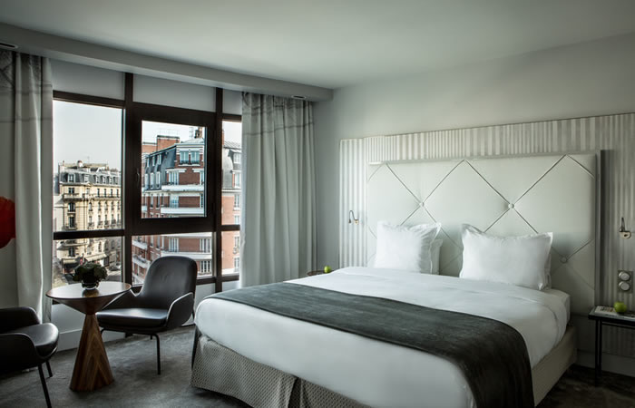 酒店設有可欣賞艾菲爾鐵塔的窗戶,晚上非常迷人。
