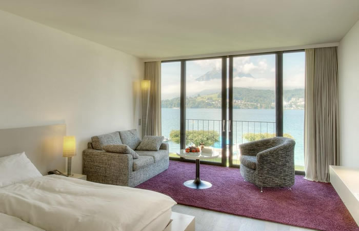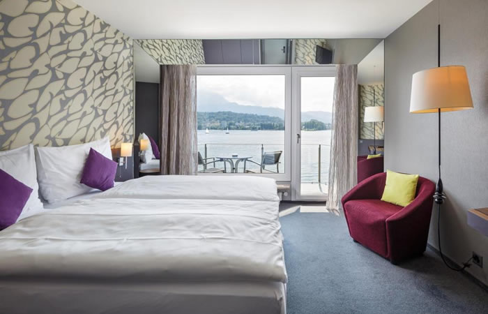 在火車站對面的酒店,交通十分便捷。酒店地處盧塞恩市中心,去瑞吉山只需走幾步路坐上遊輪即可。
