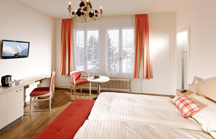 酒店是一間可愛的正宗瑞士風格小木屋,設有平均大小的客房。