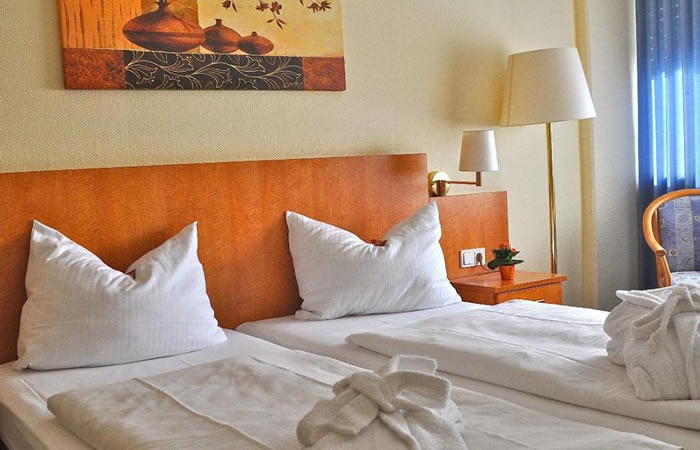 一出法蘭克福車站即可到達。房間老舊但算乾淨,房間迷你吧飲料很多且都免費很超值。