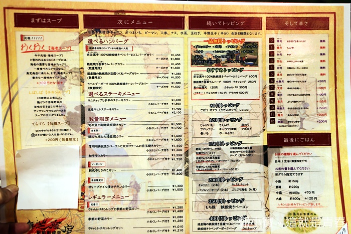 | 另一份本來要點這北海道產的牛排湯咖哩,畢竟牛排湯咖哩比較少見,但是後面才發現原來我們真的胡亂點一通,最後我們這一碗變成雙主菜跟加點一堆食材。 |