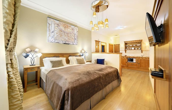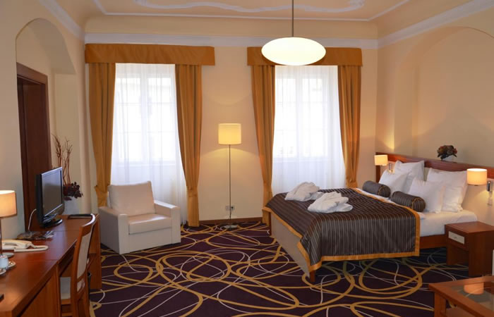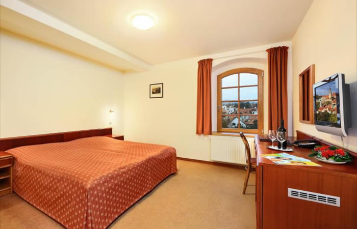 在廣場中央。房間空間很大,裝潢很有庫倫洛夫的童話風格。餐廳提供大份量又實惠的餐點。 |