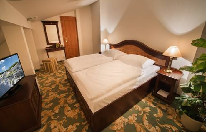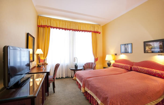 這家酒店幾乎坐落在森林裡,位於卡羅維發利的盡頭,擁有美麗的公園。