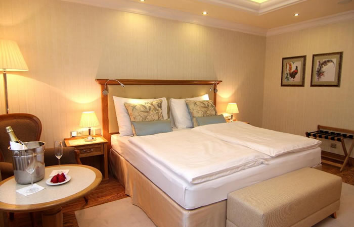 是一個帶有溫泉池,具有文藝復興時期室內裝修的豪華、經典酒店,價格也不便宜。