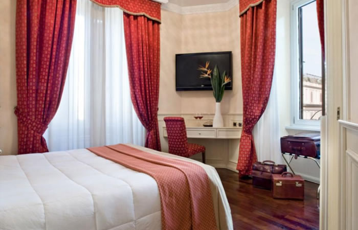 微小但甜蜜的房間。對面有羅馬最大的歌劇院,聽歌劇聽到中場時間還可以回到這間飯店休息。