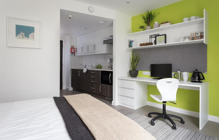 巴斯大學的學生公寓,住宿處帶廚房,對面是個小公園很僻靜。