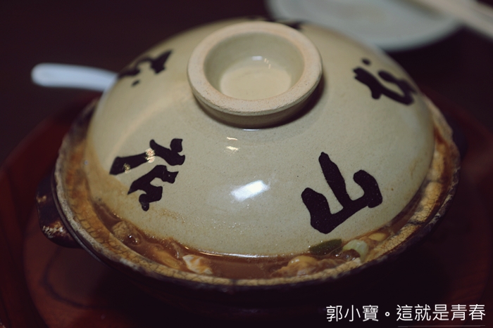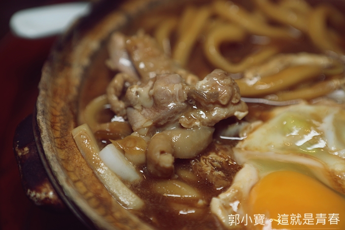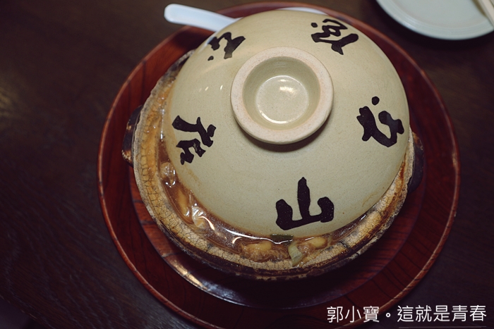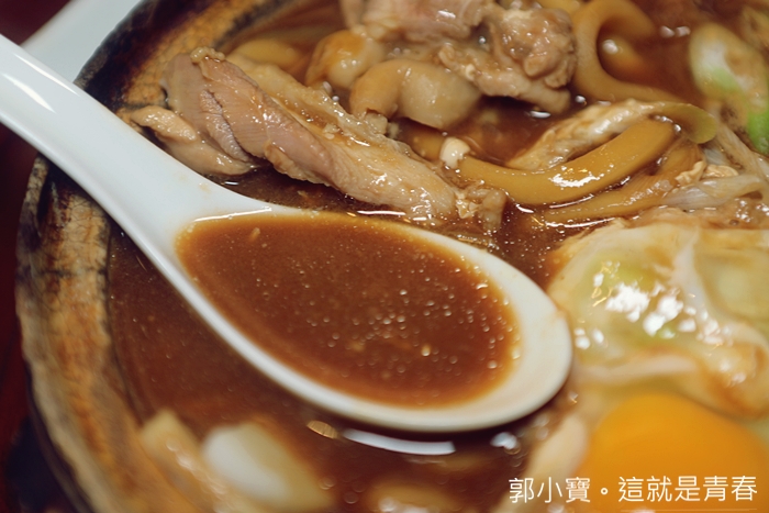 | 名古屋コーチン入り的容器是用土鍋非常難得,土鍋上面的文字就是山本屋的店名,是店家專屬店內的土鍋,一端上來的時候就聞到超濃郁的香氣。 |