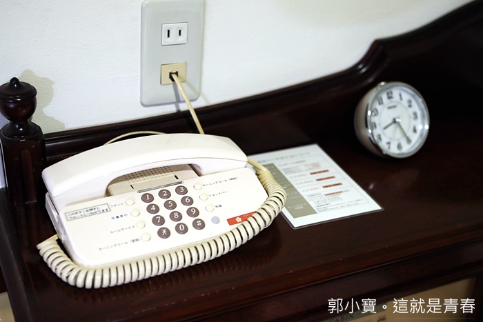 床頭一部老式電話跟鬧鐘,鬧鐘好復古我很喜歡。