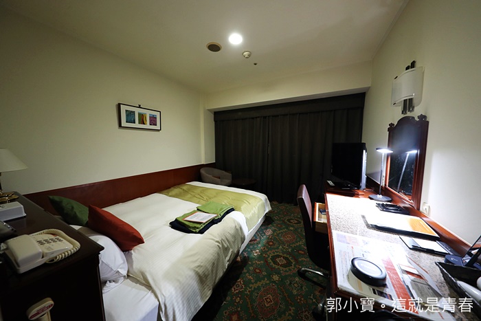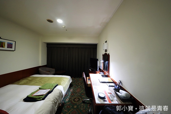 | 打開房門就感覺是一間老飯店,畢竟兩個人一晚2000元左右在旭川車站及商圈旁這樣的價格真的很超值,整體的設備跟氛圍就是早期日本洋式客房會有的感覺,不過非常乾淨,該有的也都有,只是房間內的燈光真的還滿暗的,只靠天花板一顆投射燈再撐。 |