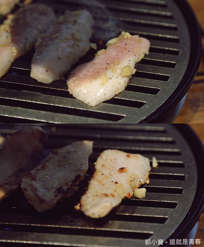 | 撒點鹽就覺得非常好吃了,油脂雖然多但是卻不膩口,台灣有很多松阪豬吃多了幾片就覺得很油很膩。 |