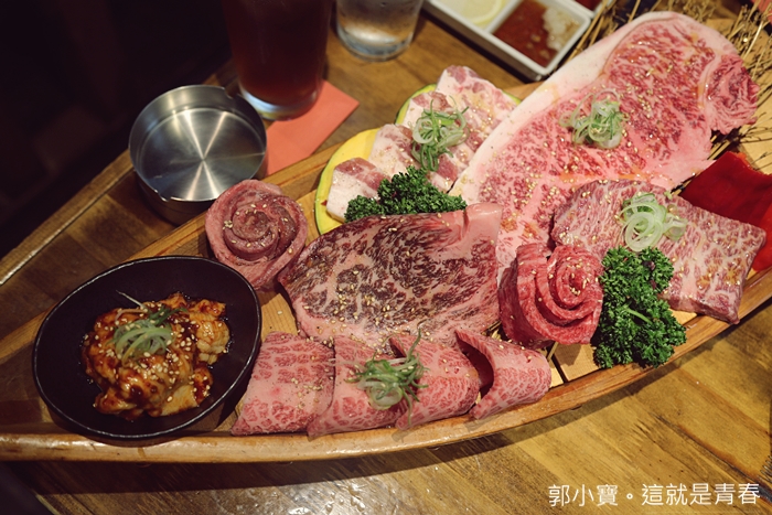 這就是讓我超級推薦的原因,這樣滿滿的船型燒肉拼盤只要5500日幣真的很划算,看起來總共有六種牛肉一種豬肉還有內臟,建議3~4個人食用,不過當天我們一家三口就完全把他KO掉了,吃得非常過癮,全日本單點燒肉店我吃過至少上百家,但是這一家的價位真的很便宜,單點燒肉真的隨便點一點都可以破萬日幣!