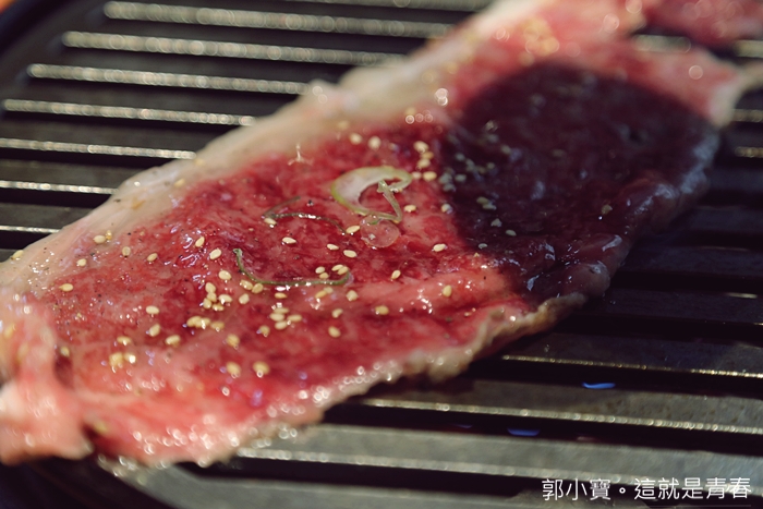 | 這幾年簡直變成了主流的肉品,店家特別挑選的橫膈膜招牌部位,加上自己特製的醃漬醬料,上來的時候真的滿震撼的,肉品超大一塊,瞬間覺得這日幣880元真的還滿划算的,烤的時候肉香四溢。 |