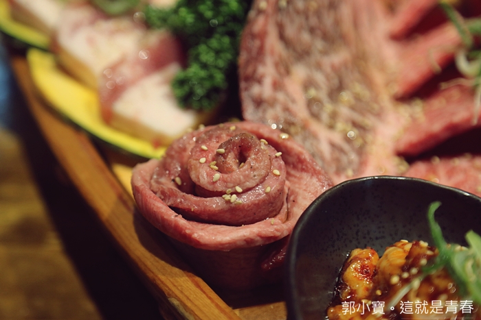| 牛舌捲成一朵花的樣子,翻開後牛舌看起來非常的漂亮且新鮮,應該是屬於前段的部位,讓我忍不住就趕緊一次全部都上火爐。 |