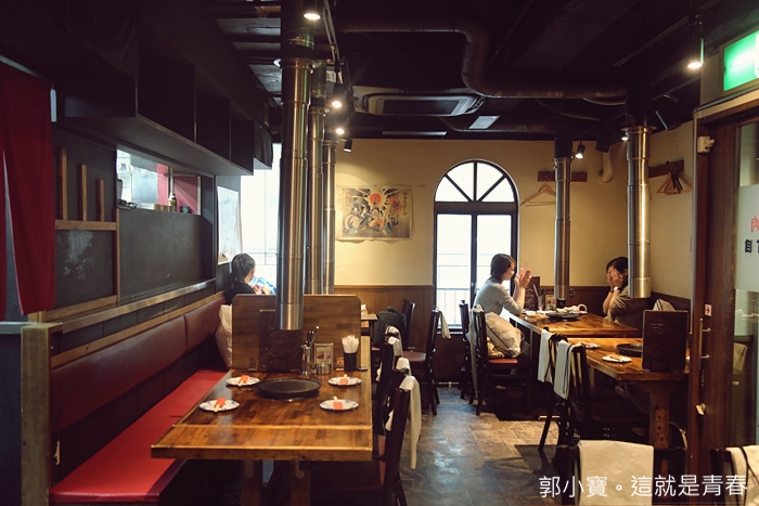 | 整個空間還滿大的,幾乎都是四~六人桌為主,店內的桌與桌空間間格都還頗大,座位也很舒服,也有單人燒肉的板前桌。 |