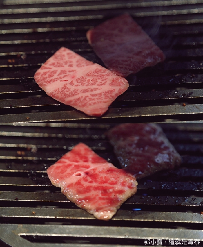 | 肋眼超大一片,但是薄薄的一片,一放上烤爐瞬間油脂就浮上了上來,隨即翻麵厚就可以起鍋了,油花非常的漂亮,賣相很好。 |