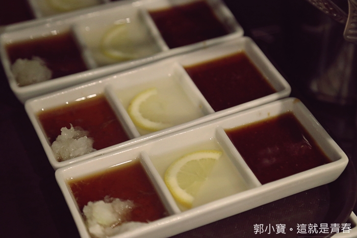 | 一上桌工作人員會就送上三疊烤肉醬汁,基本上我在日本吃燒肉都吃鹽味為主,很少使用烤肉醬汁。 |