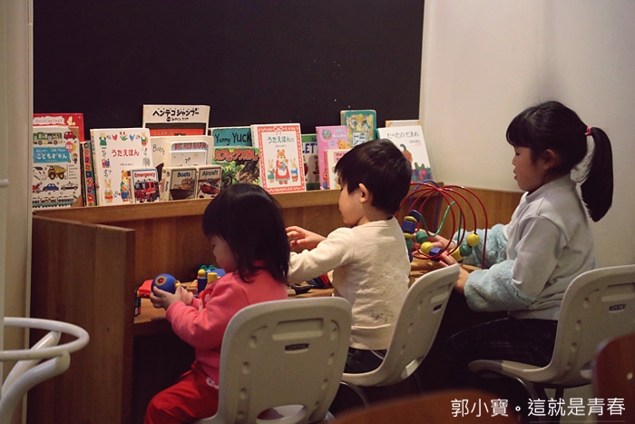 | Kastanie有超多當地人晚上都來這邊用餐,想不到他還是一家親子友善餐廳,一旁的小桌子上有很多玩具跟書籍提供給小朋友看,當天就連我女兒都跑去那邊玩,我們這趟日本行唯一一餐是可以安心把小朋友放一旁,我們兩個好好吃飯的一餐,光這一點就滿分了阿XD |
