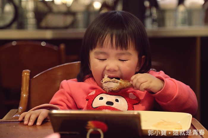 | 真的會吃不夠,因為我們家Cola就默默的把雞腿啃光了,她是很挑嘴的小朋友,一定要夠好吃她才可能會安靜的坐下來吃。 |