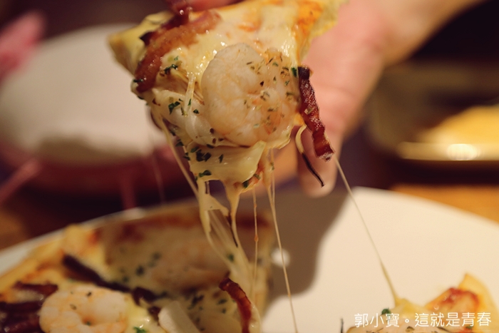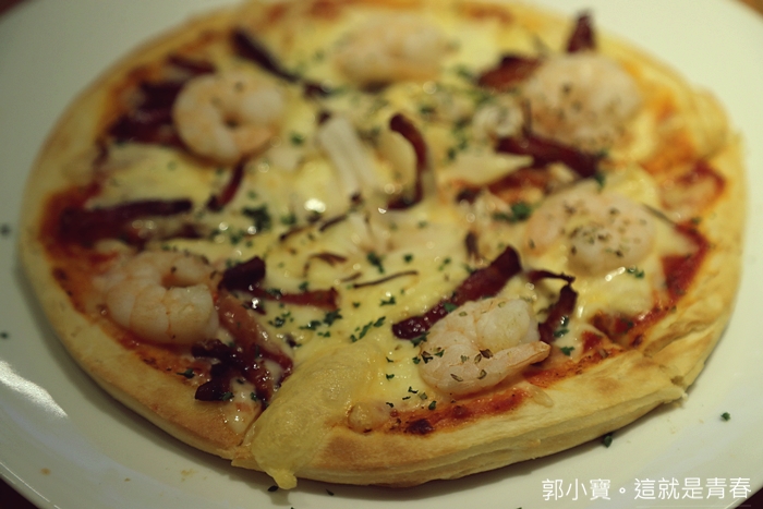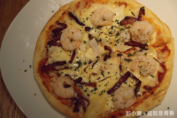 | 這批薩真的非常好吃,起司的量很多,重點是她的起司很好吃,不會膩口又香濃,蝦子肉也很彈牙,餅皮也很不錯,我老婆對披薩的要求很高,連她都默默地嗑了好幾片,真的很好吃。 |