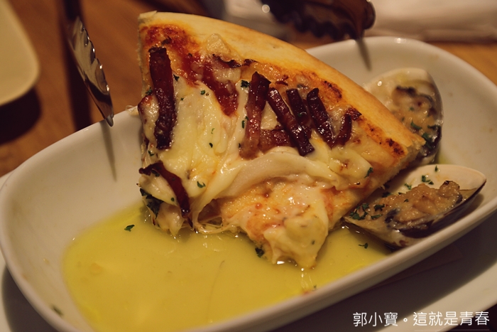 | 另外將披薩沾一點我們點的烤蛤裡面的橄欖油更是別有一番風味,超滿足! |