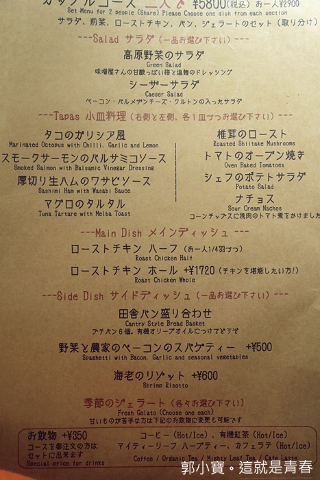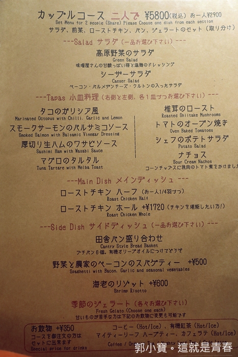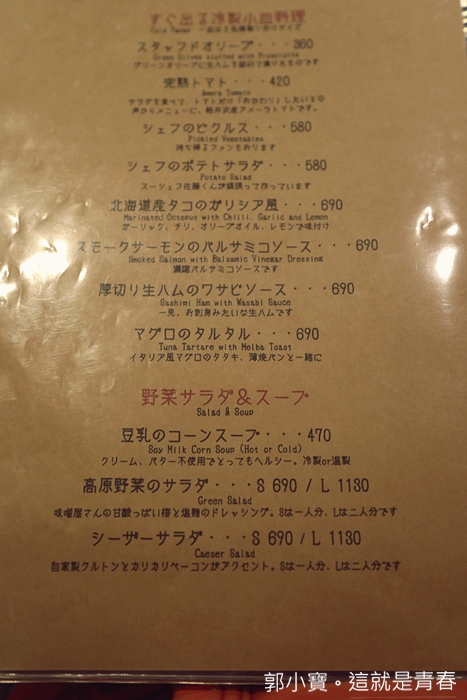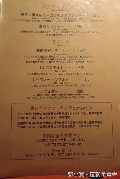 Kastanie的菜單目前只有一種版本,只有日文菜單,但是底下跟大類其實都有小小的英文,要仔細看才看得到,菜單的部份我放在文章最底下給大家參考,我個人也是半猜謎的狀態下點的,如果你真的不知道怎麼點,也可以拿我部落格的照片給他看,應該是看的出來啦XDD
