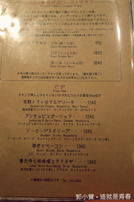 | 輕井澤的披薩非常有名,很多名店幾乎都是賣披薩的,我對英文的認知剛好在菜單裡面看到披薩的單子,就點了我看得懂的鮮蝦披薩了,上桌的時候真的很香,慶幸自己沒有點錯。 |