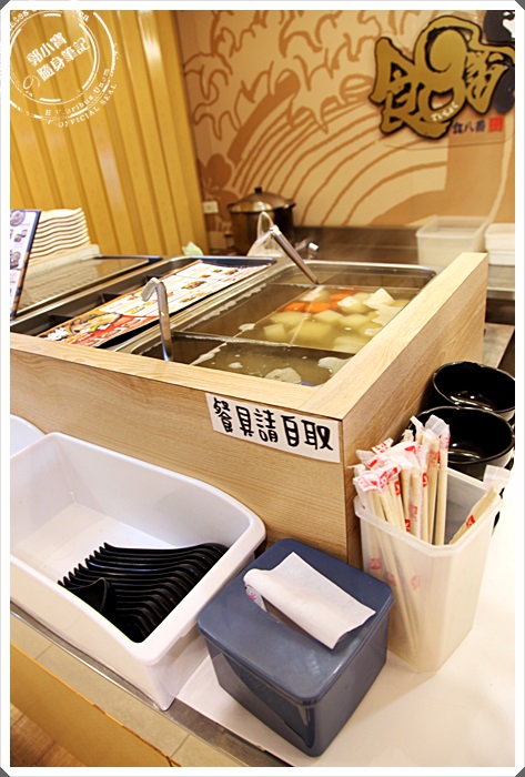 櫃台上還有著大根熬煮的清湯,旁邊還有碗,似乎客人可以自行呈湯???
