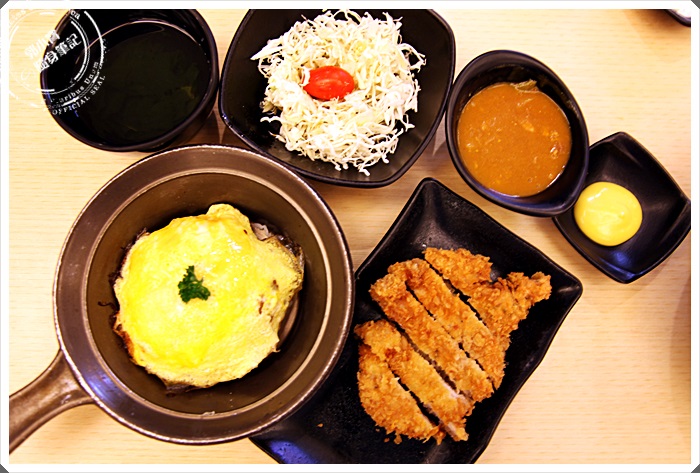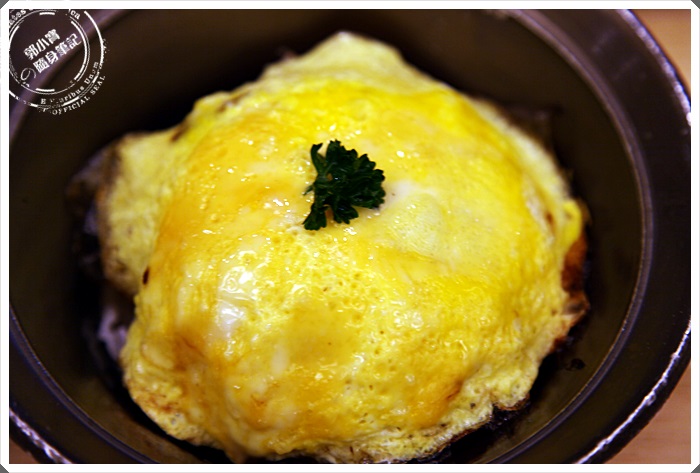 | 這金黃色的誘人可口的蛋皮就蓋在白飯上面,有點像日本幸樂院的鐵板蛋皮包飯,看到的時候我也滿驚訝可以在台灣見到這樣的做法,一樣用鐵鍋呈著,淋上咖哩醬我只能說珍的是幸福到不行,咖哩真的超濃郁的,搭配著蛋皮的滑順跟白飯粒粒口感,我超推這個組合的。 |