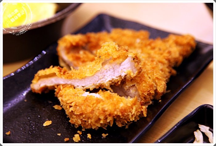| 因為我們點的是厚切豬排,所以豬排當然也是重點,豬排上面裹的粉炸的相當酥脆,一口咬下還有"喀滋"的聲音,內肉除了緊實彈牙外還帶點肉汁,厚度確實也滿夠的。 |