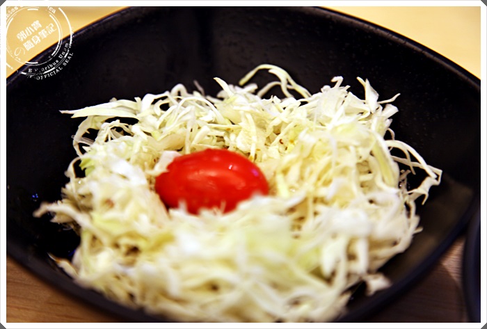 | 還有一盆莎拉,正常都會把高麗菜絲撲在炸豬排下吸油,看到高麗菜絲自成一盤的時候我還回頭看了一下豬排,豬排其實底下沒有很多的榨油,難怪吃起來滿清爽的。 |