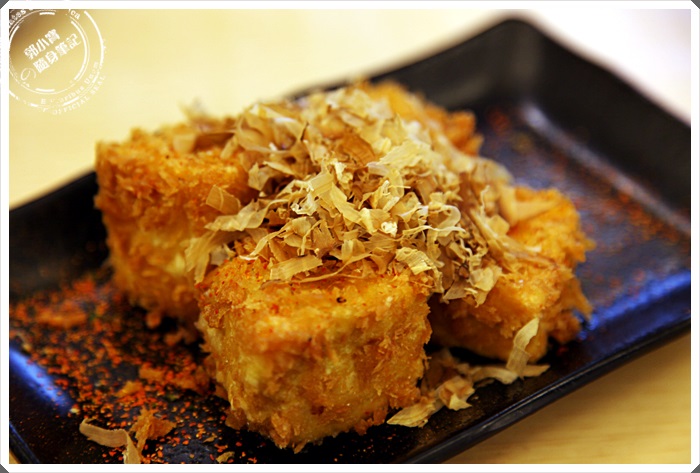 這炸豆腐可也滿特別的,除了裹住雞蛋豆腐的粉跟一般不一樣以外,上面灑了柴魚片的香氣更是絕搭,一口咬下豆腐相當的燙口,但是外皮非常的脆耶!! |