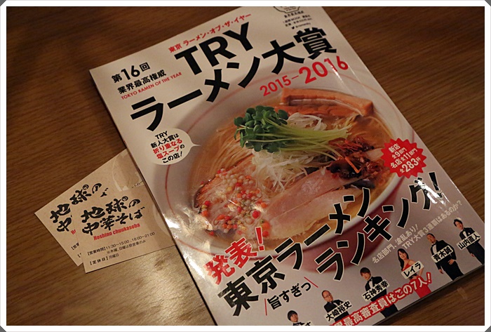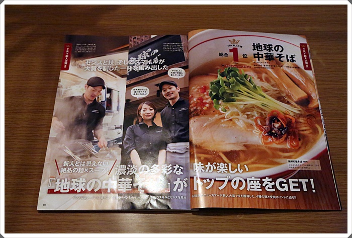 TRY鮮少會用到四面的篇幅介紹一家店,地球中華的資歷並不深,是一家滿新的拉麵店,但是不管在口味上還是創新上都得到很好的評價,翻開前面沒幾頁就被特別地介紹到了。