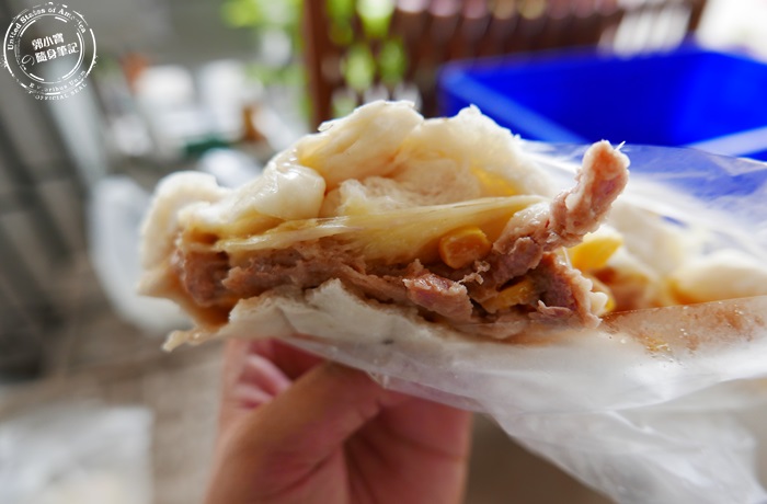 | 起司肉包的外表有撒上巴西里香料算是做記號,但也提升了包子的香氣,拉開裡頭的肉餡雖然沒有前面的肉包來的飽滿,但餡料是差不多的,味道也調配的很好,還有添加玉米粒增加口感上的層次跟甜味,重頭戲但是那滿滿的起司,牽絲的畫面太誘人了,對起司的魅力無法抗拒,整體咬起來的口感也很豐富,尤其起司QQ軟軟的奶香味濃厚讓整個風味大大提升,起司控絕對不能錯過這一款肉包,滿滿地起司絕對吃的很滿足。 |
