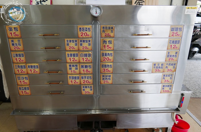 | 大大的蒸籠裡掌控著溫度,裡頭躺著的包子就跟外面貼著的標示一樣位置,方便客人拿取。 |