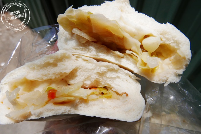 裡面包滿高麗菜跟胡蘿蔔絲,內餡一樣很有水準的吃的到蔬菜鮮甜爽脆,加上簡單的調味,整個菜包營養又美味,大小適中不會過量也不覺得空虛,而且十塊真的超便宜,噢北編整個殺紅眼,要不是胃已裝滿,真的想每種都吃上一遍,只好持續的造訪了。 |