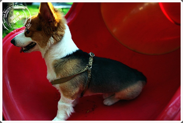 今天就很幸運的御到我的同類,另一隻科基犬妹妹,而且跟我差不多都是剛滿一歲的成全,小阿飛我就顯得