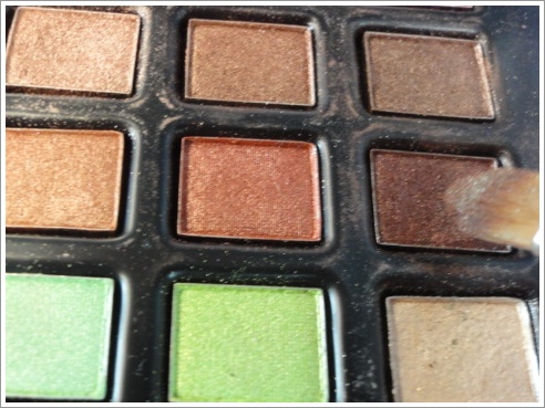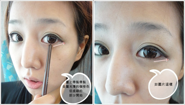 畫上亮咖啡色的眼影 |
