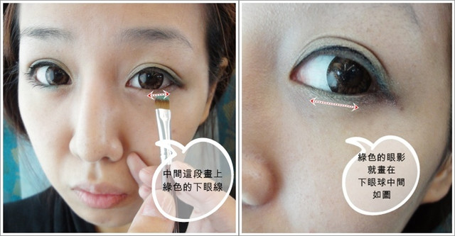 再來使用湖綠色的眼影,這種帶點藍綠色的眼影