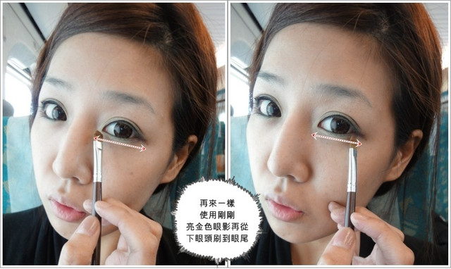一樣使用米金色的眼影,