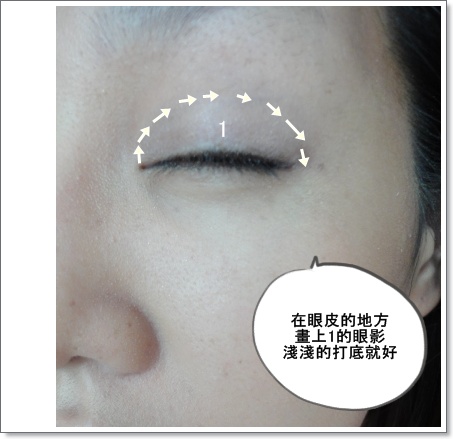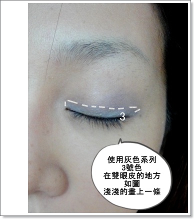 在雙眼皮奏摺處,畫上灰色眼影 |